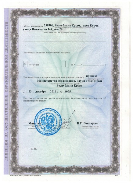 | Адрес местонахождения образовательной организации* | 298306, г. Керчь, ул. Пятилетки1-й, дом 29 |